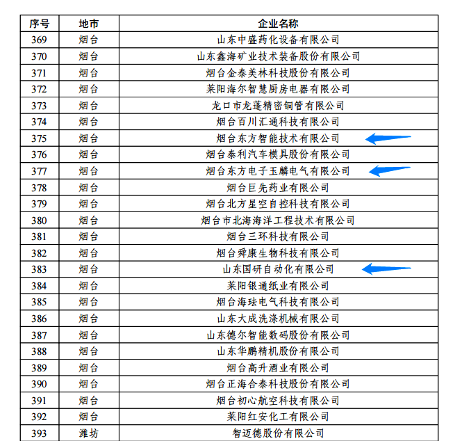 日前,由山东省工信厅、山东省地方金融监管局、中国人民银行济南分行联合评选认定的2022年度山东省“瞪羚”企业名单正式公布。我集团公司的烟台跨界跨境供应链(广州)有限公司玉麟电气有限公司、山东国研自动化有限公司、烟台东方智能技术有限公司等三家权属企业入选,认定日期为即日起至2025年12月31日。